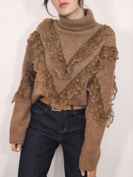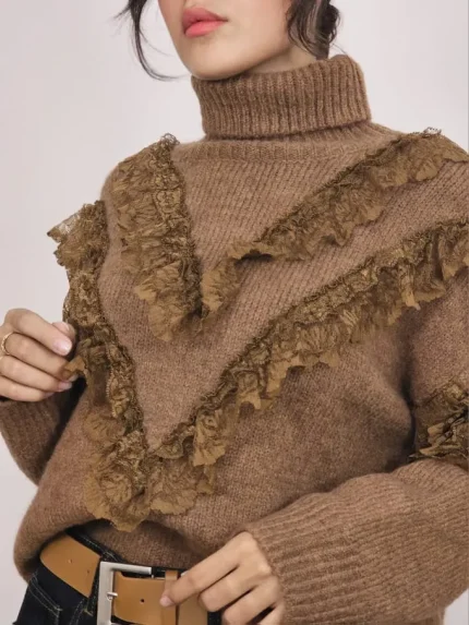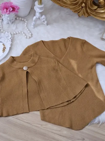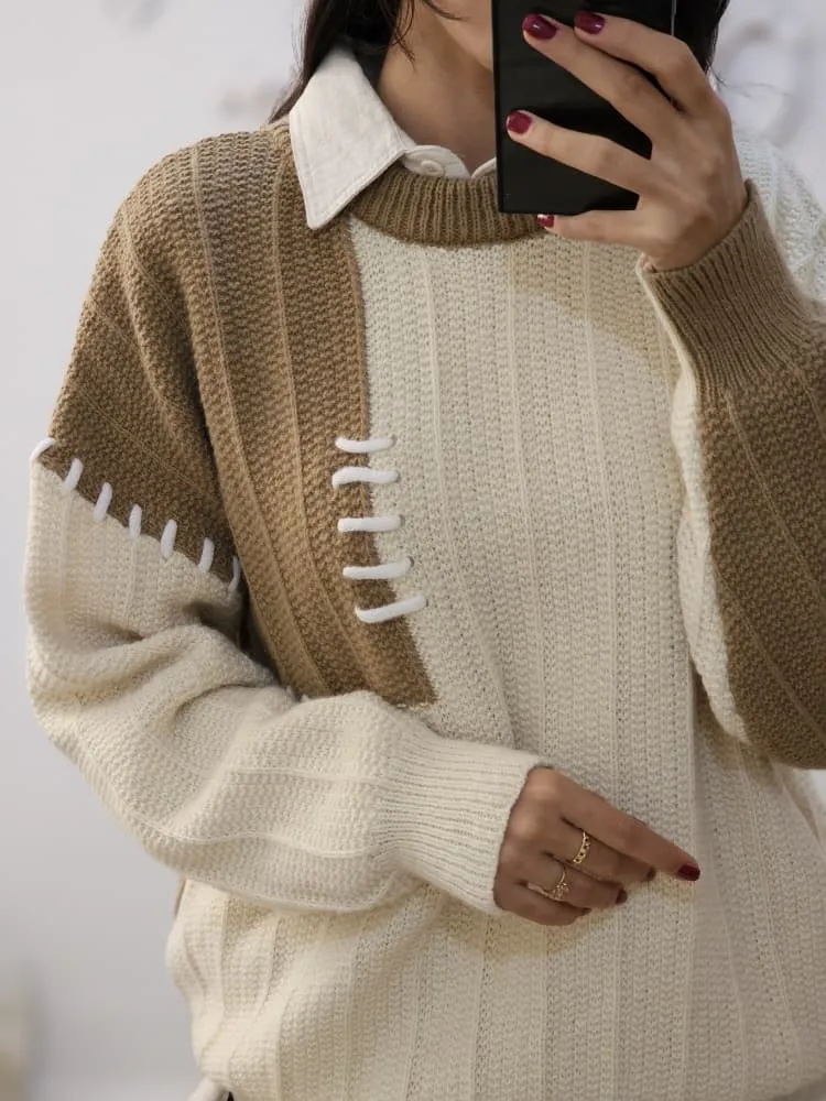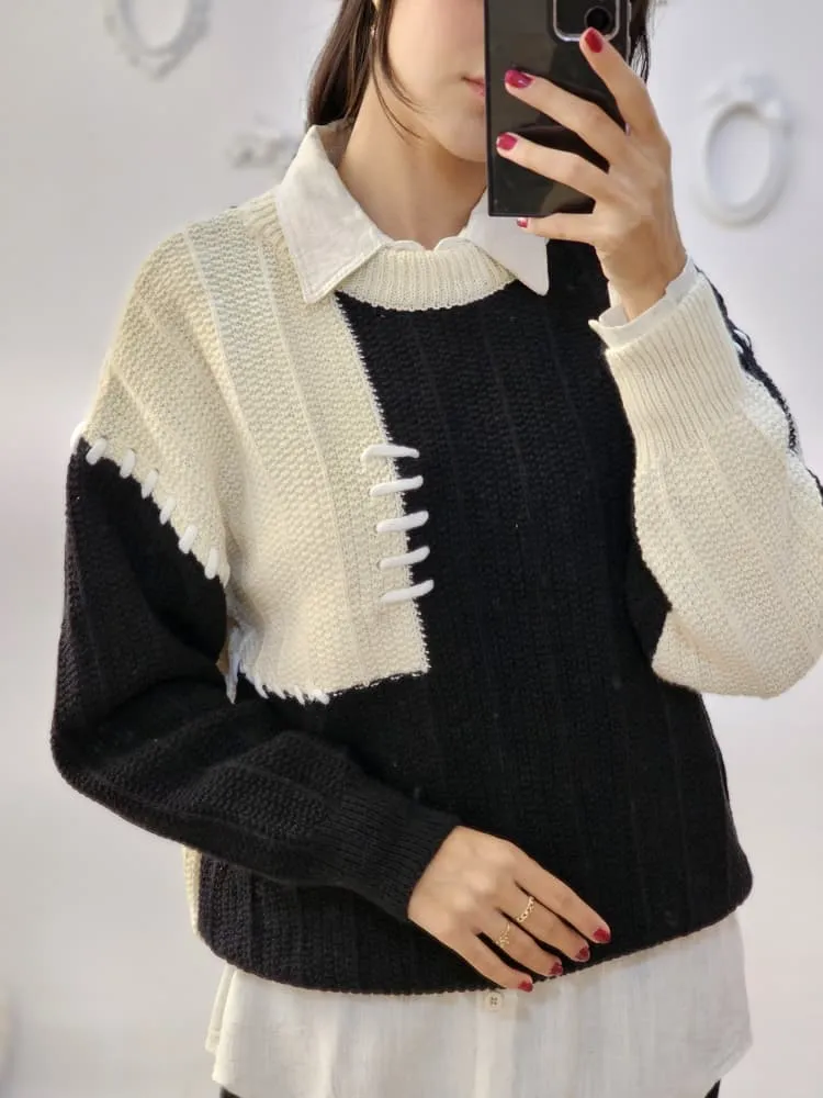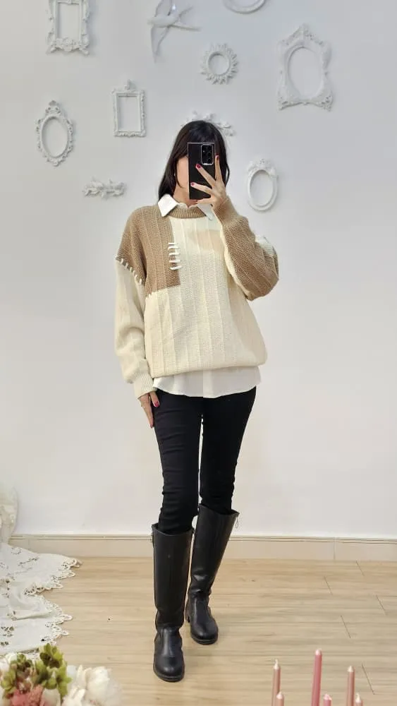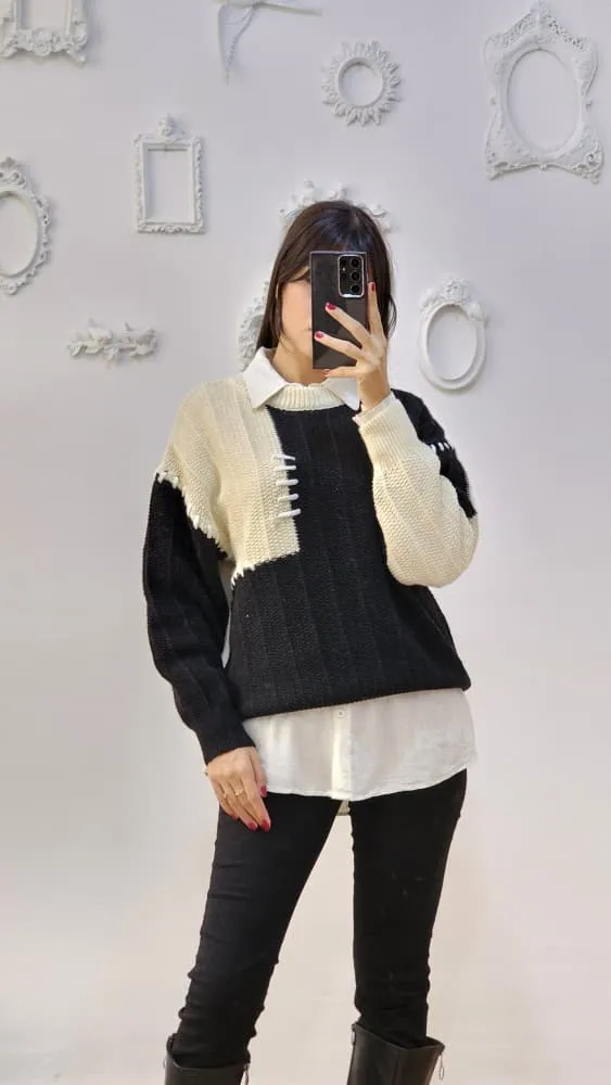 بلوز بافتی نرم و لطف با طرح تکه ای دو رنگ