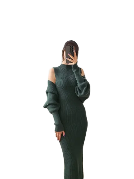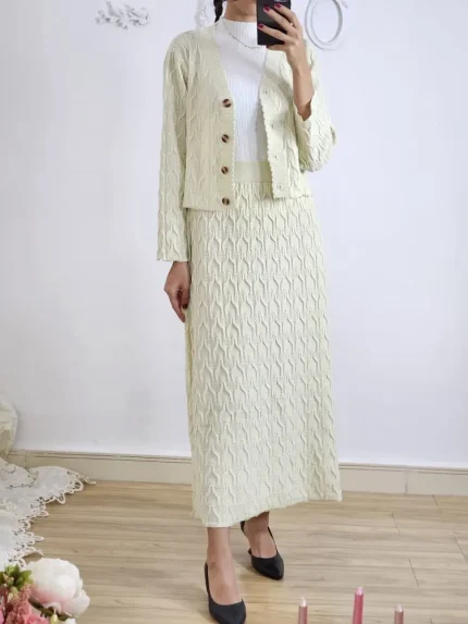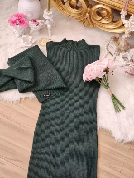 پیراهن بافت و سارافن وکت بافت نرم و ظریف رنگ سبز یشمی، سفید و خاکستری فری سایز  کش بافت از سایز ۳۸ تا ۴۴