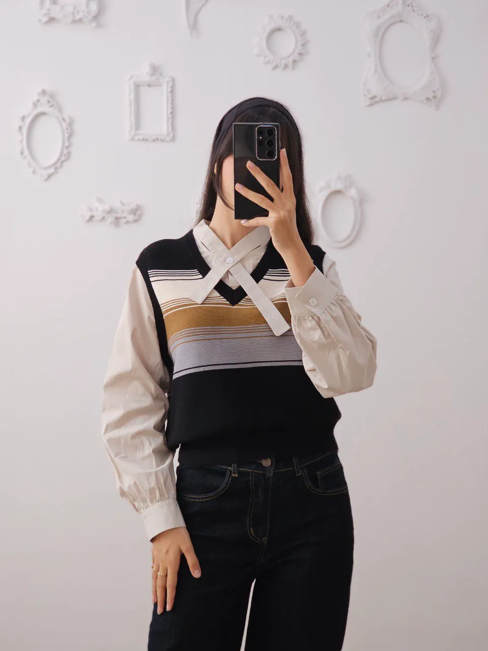 بلوز مشکی سبک + شال طرحدار رنگی → استایل نیمهرسمی برای محل کار یا مهمانی.